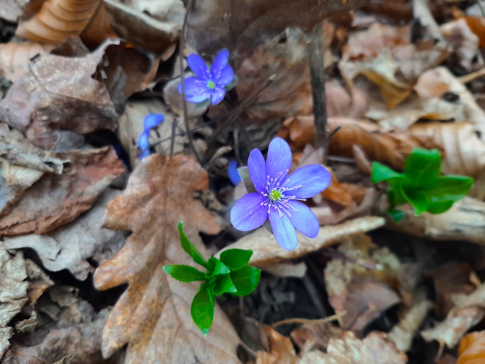 Crucea voinicului (Hepatica nobilis) este o floare delicată și prețioasă, de un albastru șters cu o nuanță de mov. O găsești în puține locuri umbroase din pădure.