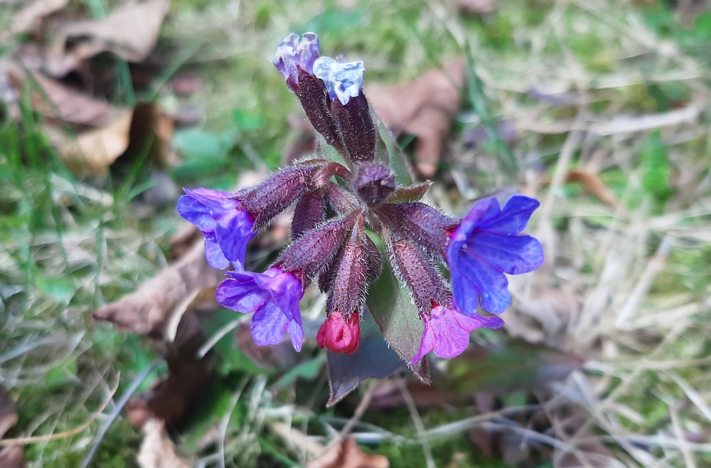 Plămânărica sau mierea ursului ori țâța oii (Pulmonaria officinalis) o găsim pe sub păduri sau în pădure.