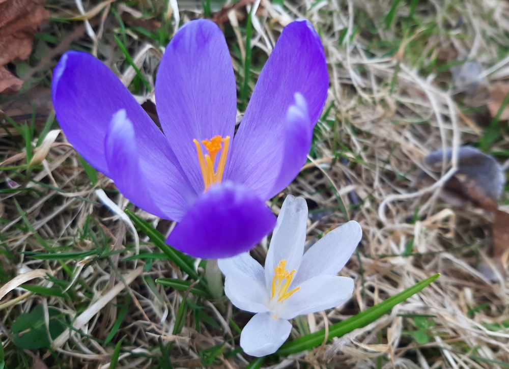 Brandușe de primăvară, mov și albă (Crocus heuffelianus)