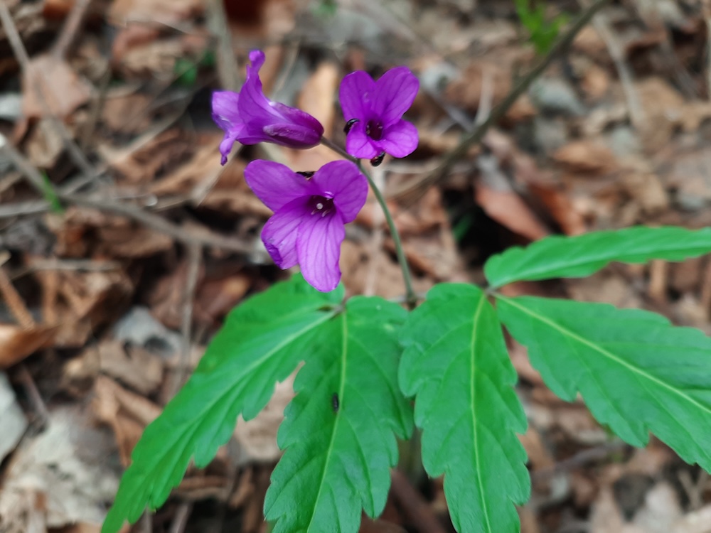 Dentaria glanduligera, o floare de primăvară endemică munților Carpați, este la fel de rară. Eu am dat peste ea printr-o pădure de stejari.