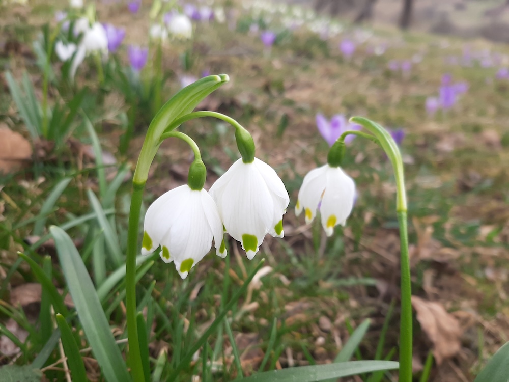 Ghioceii bogați sau luștele, cum le spune în Maramureș, sub varianta locală a ghioceilor cunoscuți din sud. Pe aici răsare doar această specie de ghiocel, nu și cea obișnuită.